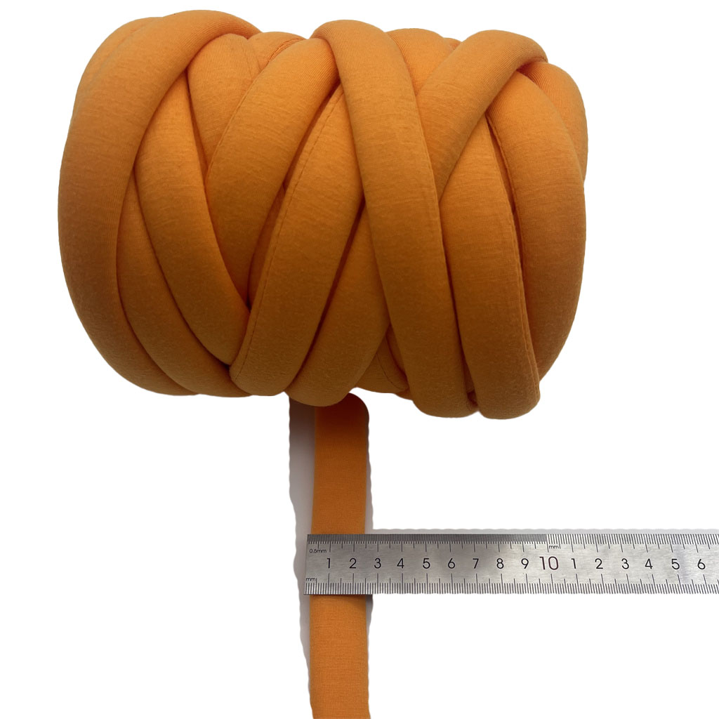 Ten produkt to dostarczana hurtowo, wielkogabarytowa przędza dywanowa przeznaczona do zastosowań tapicerskich. Przędza ma postać ciągłej rurki o określonej średnicy 2 cm, tworząc zasadniczo trójwymiarową formę. Jego skład to mieszanka poliestru i bawełny, która przyczynia się do trwałości materiału i specyficznych właściwości dotykowych. Struktura rurowa zapewnia sprężystość i odzysk po ściskaniu, co jest cechą funkcjonalną stosowaną w produkcji mebli i poduszek. Taka konstrukcja pozwala na efektywne pokrycie w procesie tapicerskim, przyczyniając się do powstania głębokich, teksturowanych powierzchni na gotowych produktach. Parametry przędzy pozwalają na zastosowanie jej w projektach wymagających tkaniny o dużej objętości i określonym profilu.