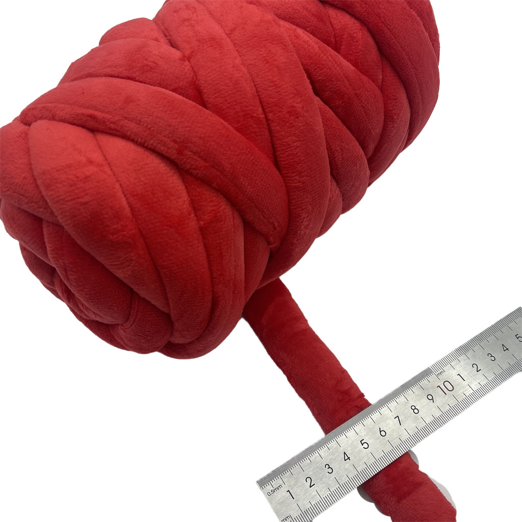 Ten produkt to fabrycznie produkowana hurtowo poliestrowa przędza fantazyjna, specjalnie zaprojektowana do robótek ręcznych. Przędza ma postać aksamitnej tuby o stałej średnicy 2 cm, co nadaje jej solidną, trójwymiarową formę. Jego skład to mieszanka poliestru i bawełny, łącząca stabilność strukturalną i sprężystość poliestru z naturalnym dotykiem bawełny. Ta kombinacja materiałów wpływa na określony kształt i właściwości dotykowe przędzy. Wstępnie uformowana struktura rurowa ułatwia proces dziania palcowego, umożliwiając efektywne tworzenie teksturowanych tkanin i akcesoriów bez konieczności stosowania tradycyjnych narzędzi. Jego wymiary i konstrukcja sprawiają, że nadaje się do produkcji przedmiotów o obszernej i miękkiej fakturze.