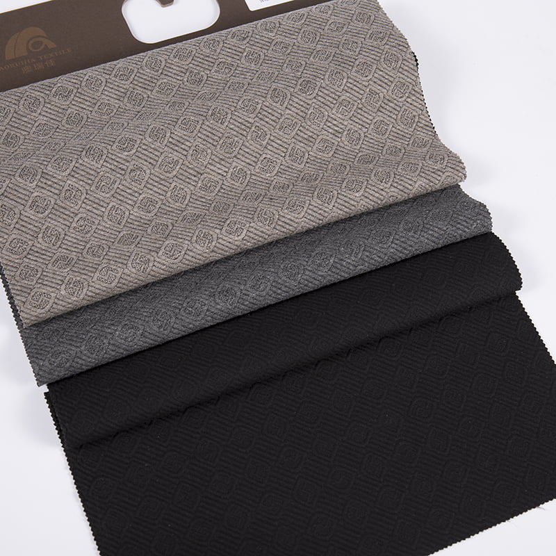 OEM/ODM Dzianina z wytłoczonym wzorem diamentowym typu diagonal, żakardowa, poliestrowa, wiskozowa, elastanowa, tkanina sportowa na odzież AW23019. Mamy ponad 20-letnie doświadczenie w branży i jesteśmy znani z wysokiej jakości tkanin i przędz.