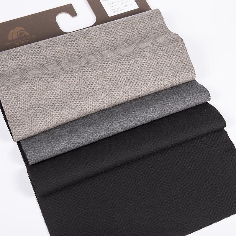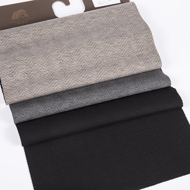 OEM/ODM Tłoczona dzianina w jodełkę żakardowa poliestrowa wiskoza elastanowa tkanina sportowa na odzież AW23023. Mamy ponad 20-letnie doświadczenie w branży i jesteśmy znani z wysokiej jakości tkanin i przędz.