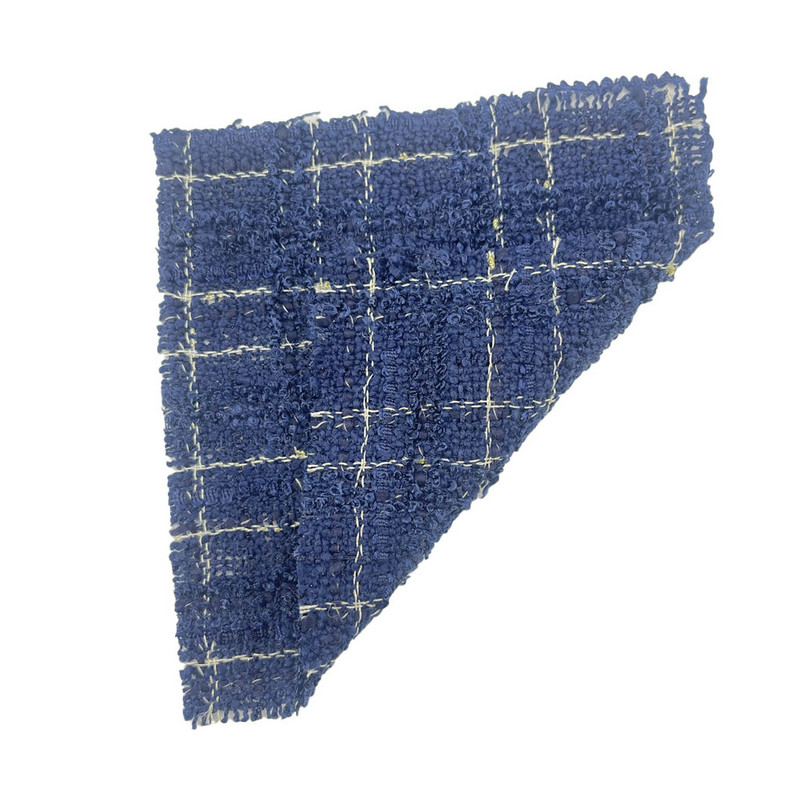 Tkanina ta, oznaczona jako artykuł 19909-10, to tweed wykonany w 100% z poliestru, przeznaczony na odzież damską. Dzięki masie jednostkowej wynoszącej 558 g/m² charakteryzuje się średnią wagą struktury. Ciemnoniebieska podstawa jest tkana we wzór w kratę, zintegrowany w procesie produkcyjnym z metaliczną przędzą. Ta kombinacja tworzy kontrast zarówno pod względem właściwości wizualnych, jak i dotykowych. Skład całkowicie poliestrowy zapewnia stabilność wymiarową i stałą wydajność. Dodanie elementów metalicznych dodaje do powierzchni tekstylnej detale odbijające światło. Te cechy sprawiają, że tkanina nadaje się na odzież, w której priorytetem jest integralność strukturalna i efekt dekoracyjny.