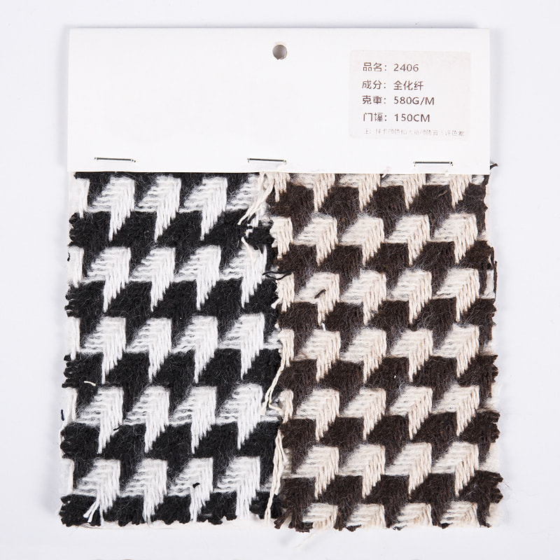 OEM/ODM Brązowa czarna tłoczona tkanina tweedowa ze wzorem grotu strzałki 2406. Mamy ponad 20-letnie doświadczenie w branży i jesteśmy znani z wysokiej jakości tkanin i przędz.