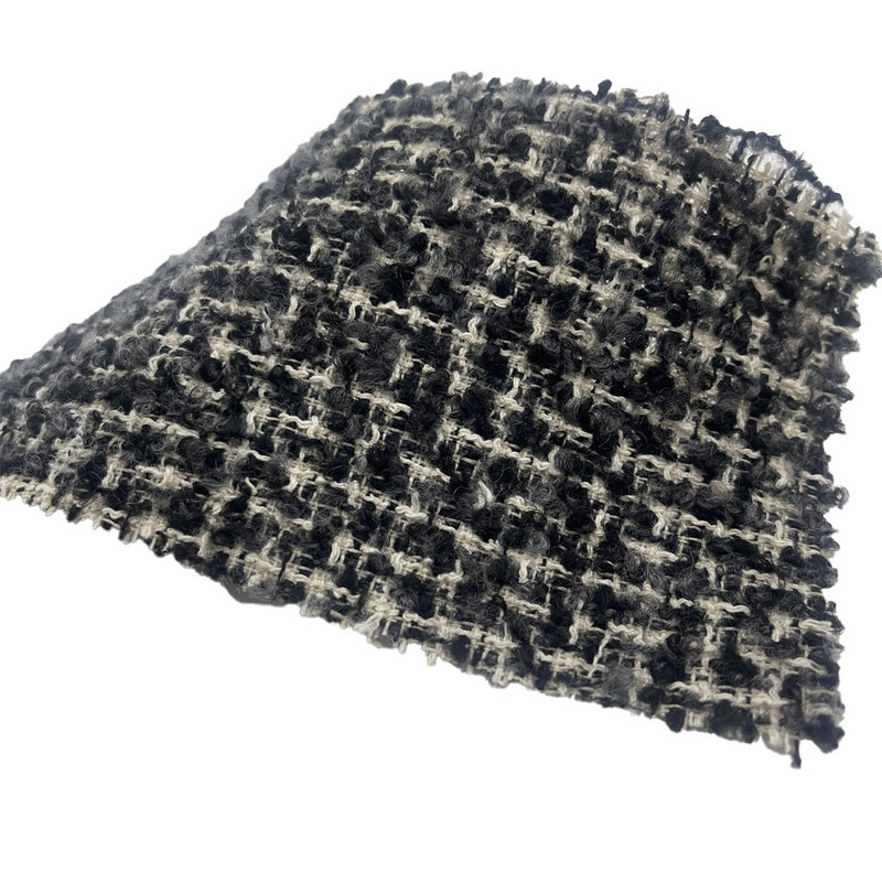 Tkanina ta, oznaczona jako artykuł 23515, jest tweedową tkaniną składającą się z 77% poliestru, 14% bawełny, 4% wełny, 4% akrylu i 1% nylonu. Dzięki masie jednostkowej wynoszącej 420 g/m2 stanowi konstrukcję o średniej masie. Powierzchnia ma wytłoczony wzór w połączeniu ze strukturą przędzy pętelkowej, tworząc teksturowany efekt dotykowy. Mieszanka wielu włókien łączy w sobie stabilność poliestru, wchłanianie wilgoci przez bawełnę, naturalny charakter wełny, strych akrylu i wzmocnienie nylonu. Dzięki tej kombinacji powstaje tkanina o wymiarowości powierzchni i integralności strukturalnej. Te cechy sprawiają, że można go stosować do odzieży wymagającej zarówno wizualnej tekstury, jak i trwałości funkcjonalnej.