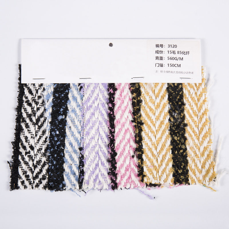 OEM/ODM Żakardowa wełniana tkanina tweedowa w jodełkę 3120. Mamy ponad 20-letnie doświadczenie w branży i jesteśmy znani z wysokiej jakości tkanin i przędz.