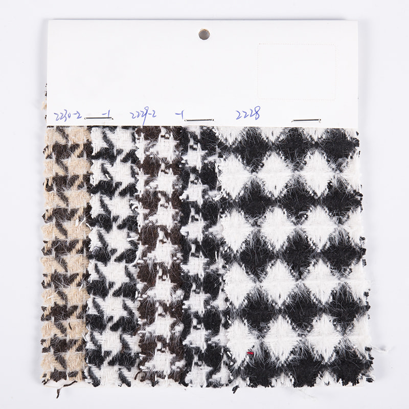 Cechą charakterystyczną tkaniny Tweed Long Hair Diamond Houndstooth 2230/2229/2228 jest unikalna technologia obróbki długich włosów, która łączy klasyczny kształt rombu i wzór w pepitkę, tworząc patchworkowy i warstwowy efekt wizualny. Ten innowacyjny projekt nie tylko nadaje tkaninie dużą rozpoznawalność, ale także wyróżnia ją spośród wielu podobnych produktów. Z punktu widzenia składu materiałowego tkanina składa się w 100% z surowców włókien chemicznych, co zapewnia jej doskonałe właściwości fizyczne i stabilność chemiczną. Materiał z włókien chemicznych, charakteryzujący się dobrą odpornością na zużycie, zagnieceniami i łatwością pielęgnacji, pozwala tej tkaninie zachować wyraźny kształt i jasny kolor podczas długotrwałego użytkowania. Jednocześnie higroskopijność, oddychalność i inne wskaźniki włókien chemicznych są również ściśle kontrolowane, aby zapewnić wygodę podczas noszenia. Godne pochwały jest również kunszt wykonania długiego wełnianego tweedu w romby w pepitkę. Zastosowanie zaawansowanych technologii i sprzętu tekstylnego pozwala zachować szorstką teksturę tkaniny, a jednocześnie jest delikatny w dotyku. Przędze osnowy i wątku są ściśle i równomiernie splecione, co zapewnia wytrzymałość i stabilność tkaniny. Jeśli chodzi o obszary zastosowań, tweedowa tkanina w kształcie pepitki z długimi włosami jest szeroko stosowana w modzie haute couture, eleganckich garniturach i różnych tkaninach dekoracyjnych ze względu na swój unikalny design i doskonałe właściwości użytkowe.