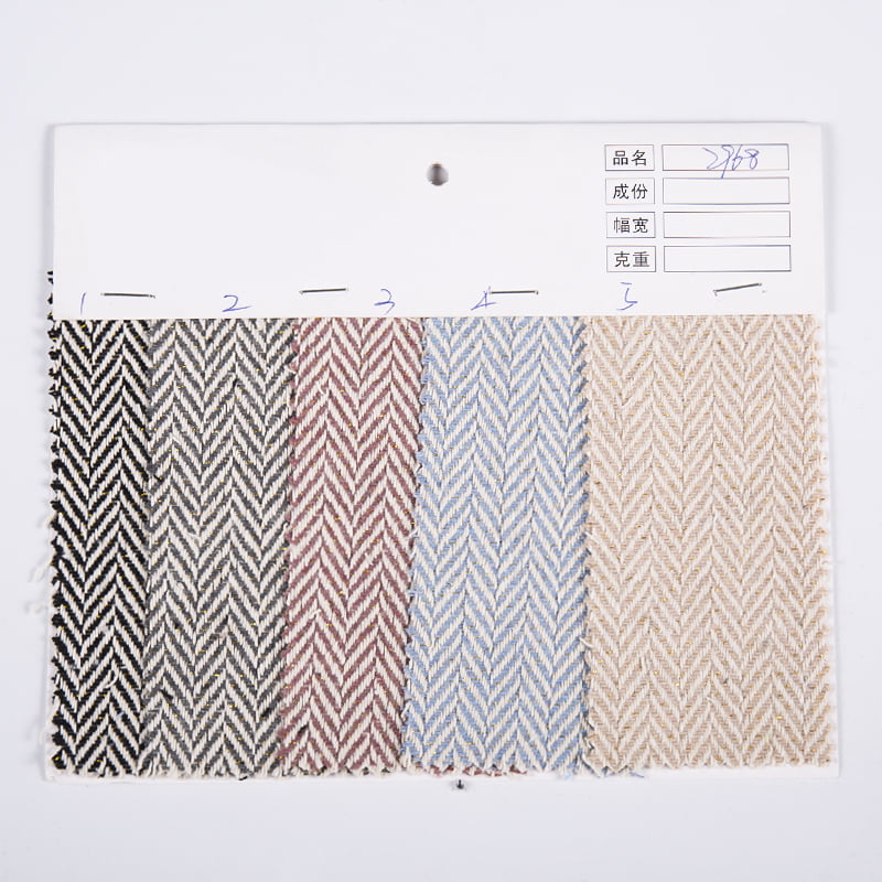 OEM/ODM Tkanina tweedowa w metaliczną jodełkę w kolorze złotym 2968. Mamy ponad 20-letnie doświadczenie w branży i jesteśmy znani z wysokiej jakości tkanin i przędz.