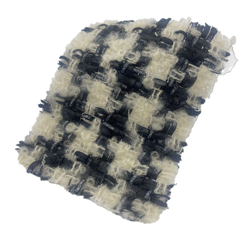 Tkanina ta, oznaczona jako artykuł 23548, jest wełnianą tkaniną tweedową składającą się z 38% poliestru, 36% wełny i 26% bawełny. Dzięki masie na jednostkę powierzchni wynoszącej 410 g/m2 stanowi konstrukcję o średniej masie. Kolorystyka złamanej bieli i czerni jest wpleciona we wzór w kratę, wzmocniony techniką szczotkowania powierzchni, która tworzy wypukłą teksturę przypominającą plusz. Ten proces wykańczania tworzy gęstą powierzchnię o krótkim włosiu, która zmienia właściwości dotykowe tkaniny. Skład włókien przyczynia się do stabilności strukturalnej tkaniny i zarządzania wilgocią. Te cechy sprawiają, że ten szczotkowany tweed nadaje się do odzieży wymagającej zarówno wizualnego podkreślenia wzoru, jak i charakterystycznej tekstury powierzchni.