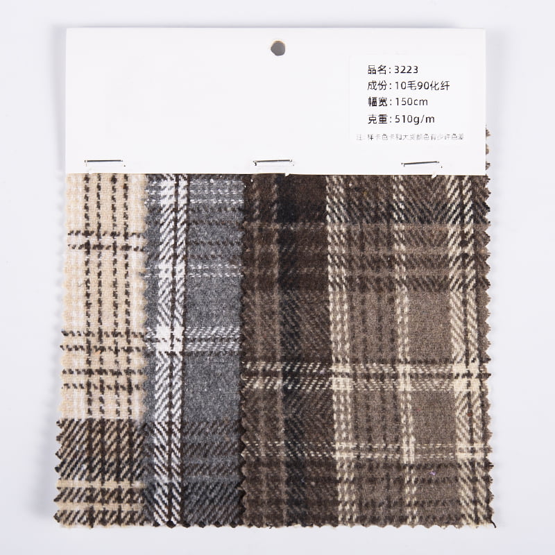 Tkanina tweedowa w kratę o skośnym splocie z Chin 3223 to wysokiej jakości tkanina mieszana pochodząca z Chin. Dzięki zaawansowanej technologii tekstylnej 10% wysokiej jakości wełny i 90% wysokowydajnych włókien chemicznych zostało naukowo dobranych w celu stworzenia nowej tkaniny charakteryzującej się zarówno naturalnym ciepłem, jak i nowoczesnymi właściwościami. Tkanina ma w swojej konstrukcji klasyczny wzór w kratę. Dzięki delikatnej technologii tkania wzór prezentuje efekt wizualny patchworku i gładkich linii, nadając końcowemu produktowi odzieżowemu unikalny element retro i modowy. Jeśli chodzi o materiał, dodatek wełny zapewnia dobre zatrzymywanie ciepła i oddychalność tkaniny, dzięki czemu użytkownik może zachować komfort ciała jesienią i zimą. Jednocześnie naturalny miękki dotyk wełny poprawia również ogólną jakość tkaniny, dzięki czemu ubrania lepiej dopasowują się do skóry i zapewniają delikatne wrażenia podczas noszenia. Mieszanka włókien chemicznych znacznie poprawia praktyczne właściwości tkaniny, w tym odporność na zużycie, odporność na zmarszczki i łatwość pielęgnacji, dzięki czemu tkanina ta ma szersze zastosowanie i dłuższą żywotność, przy jednoczesnym zachowaniu wysokiej jakości tekstury. Tekstura tweedu dodaje także bogatych warstw wizualnych i trójwymiarowości tej tkaninie. Ta wyjątkowa faktura nie tylko podnosi ogólną estetykę tkaniny, ale także sprawia, że wykonane z niej produkty odzieżowe są bardziej rozpoznawalne i spersonalizowane. Niezależnie od tego, czy zostanie użyta w wykwintnych płaszczach, eleganckich sukienkach czy codziennych spodniach, tkanina ta może doskonale pokazać swoją niepowtarzalną fakturę i urok designu, stając się wysokiej klasy materiałem, który podkreśla zarówno nowoczesną modę, jak i praktyczność.