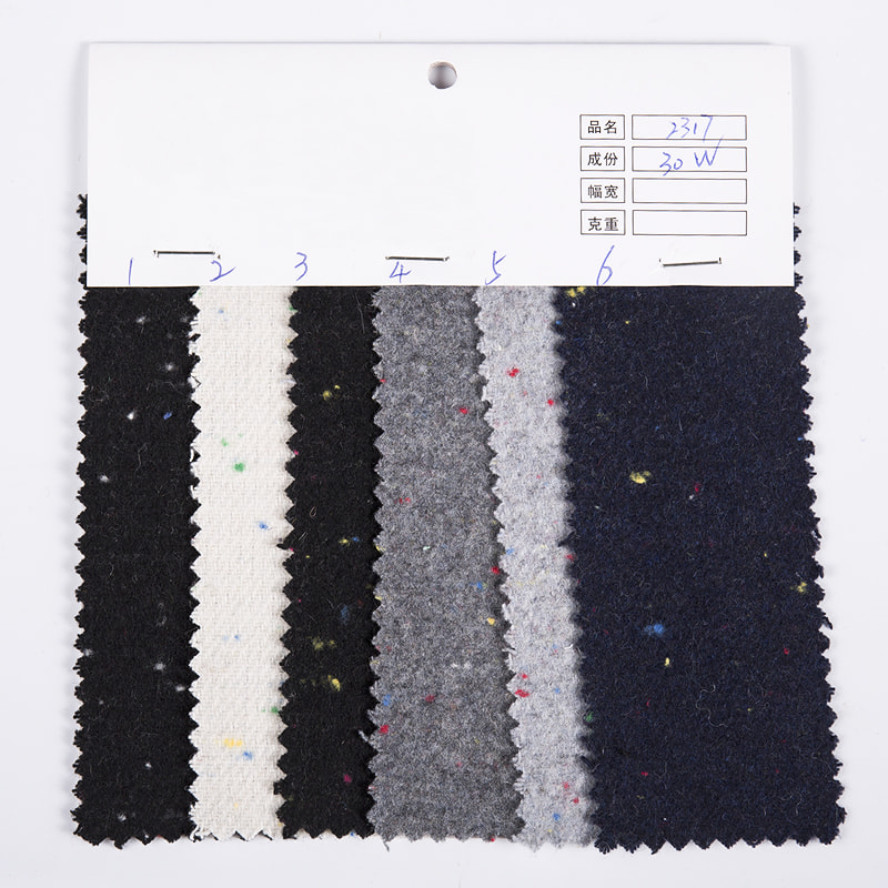Zwykła tkanina tweedowa w wielobarwne kropki 2317 to produkt tekstylny, który łączy w sobie tradycyjne rzemiosło z nowoczesnymi koncepcjami projektowymi. Tkanina wykorzystuje klasyczną technologię splotu płóciennego, a dzięki precyzyjnemu przeplataniu osnowy i wątku zapewnia stabilność strukturalną i trwałość tkaniny, zapewniając jednocześnie dobrą oddychalność i umiarkowaną elastyczność, spełniając podwójne potrzeby nowoczesnej odzieży w zakresie komfortu i trwałości. Pod względem wzornictwa tkanina 2317 opiera się na wielokolorowych kropkach, a dzięki precyzyjnemu układowi i dopasowaniu kolorów zapewnia efekt wizualny, który jest jednocześnie prosty i szczegółowy. Te kropkowe wzory nie tylko wzbogacają efekt wizualny tkaniny, ale także dodają jej niepowtarzalnego, modowego sznytu. Nadaje się do różnych stylów odzieży, takich jak płaszcze, sukienki, codzienne spodnie itp. i może zaspokoić potrzeby ubierania się przy różnych okazjach. Jeśli chodzi o skład materiału, tkanina 2317 ma mieszany wzór składający się z 30% wełny i 70% włókien chemicznych. Dodatek wełny nie tylko poprawia zatrzymywanie ciepła i czucie tkaniny, ale także nadaje jej pewne naturalne właściwości antybakteryjne i oddychające, dzięki czemu jest bardziej odpowiedni do noszenia na ciele człowieka. Dobór składników włókien chemicznych skutecznie zwiększa odporność na zmarszczki, zużycie i łatwość układania tkaniny, dzięki czemu ubrania są mniej podatne na odkształcenia podczas noszenia oraz są łatwe w czyszczeniu i konserwacji, co wydłuża żywotność odzieży.