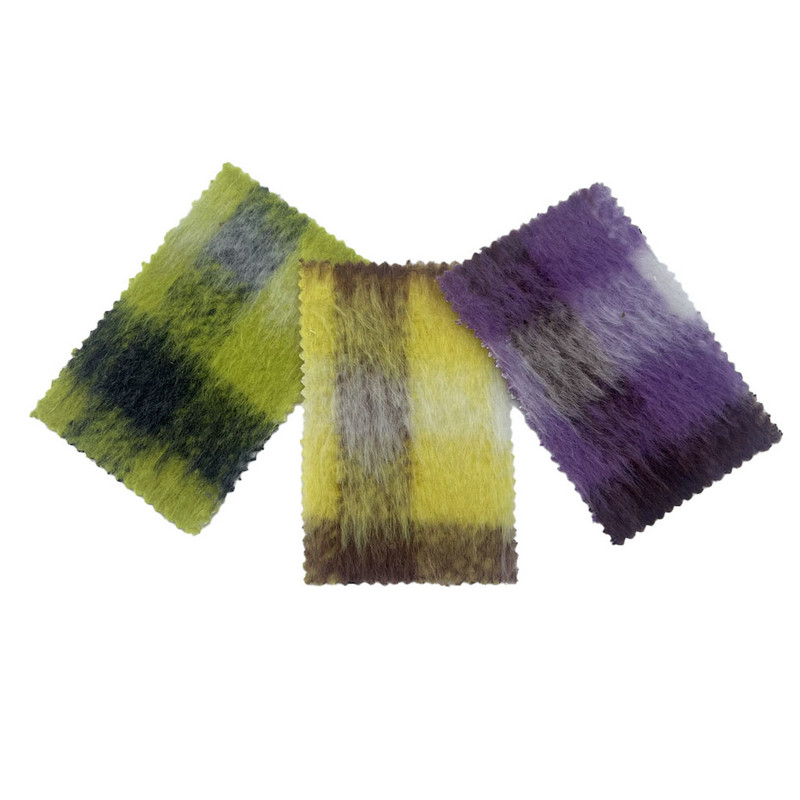 Tkanina ta, oznaczona jako artykuł 3256, jest tkaniną tweedową składającą się z 20% wełny i 80% innych włókien. Dzięki masie jednostkowej wynoszącej 700 g/m jest to konstrukcja ciężka. Fioletowa powierzchnia charakteryzuje się wzorem w kratę zintegrowanym z fakturą długiego włosia, tworząc strukturę kompozytową poprzez specjalistyczne procesy tkania i wykańczania. Ta technika produkcji pozwala uzyskać na powierzchni włókno o większej długości, co daje wyraźny efekt trójwymiarowości. Skład mieszanki wełny przyczynia się do właściwości termoizolacyjnych tkaniny i odporności strukturalnej. Te właściwości techniczne powodują, że materiał ma znaczną objętość i głębokość powierzchni, dzięki czemu można go stosować na płaszcze, gdzie wymagane jest podwyższone ciepło i wyrazista faktura.