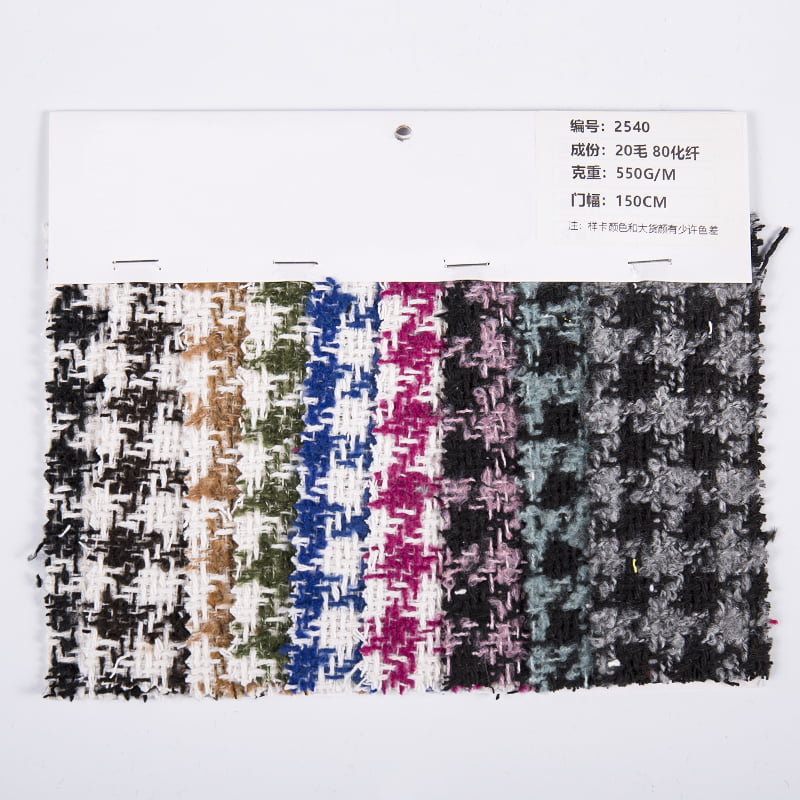 OEM/ODM Sweter pętelkowy, wełniana tkanina tweedowa w pepitkę 2540. Mamy ponad 20-letnie doświadczenie w branży i jesteśmy znani z wysokiej jakości tkanin i przędz.