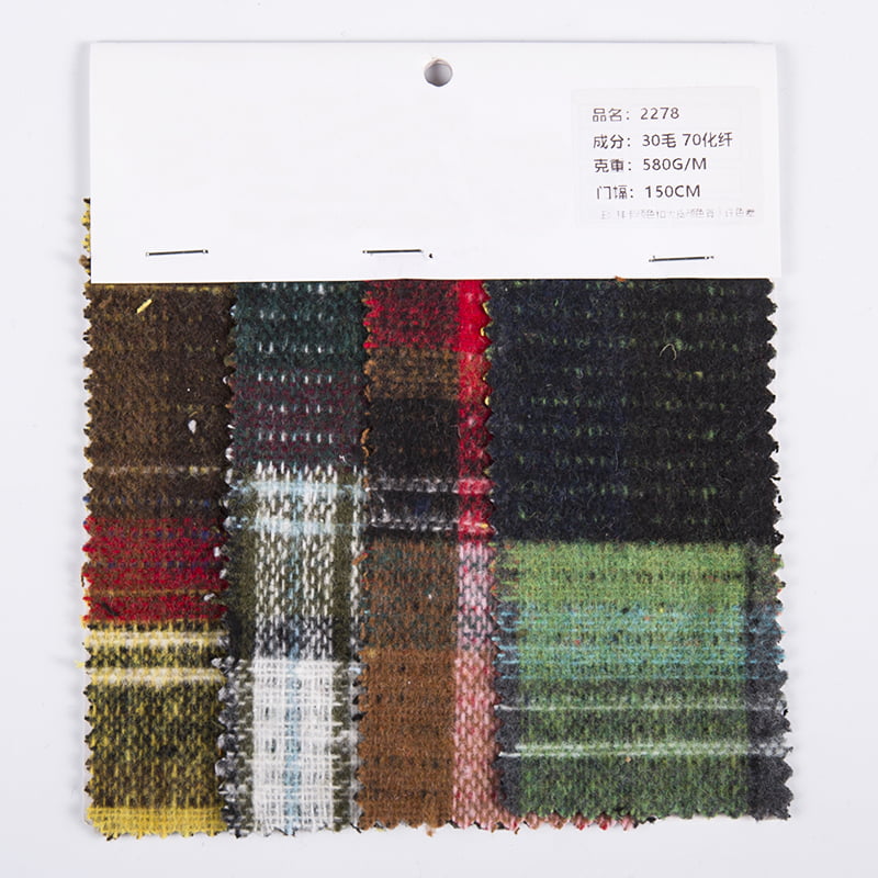 Sprzedaż hurtowa Tartanowa krata wielokolorowa 30% wełna 70% tkanina tweedowa z włókien chemicznych 2278 Fabryka, oferujemy