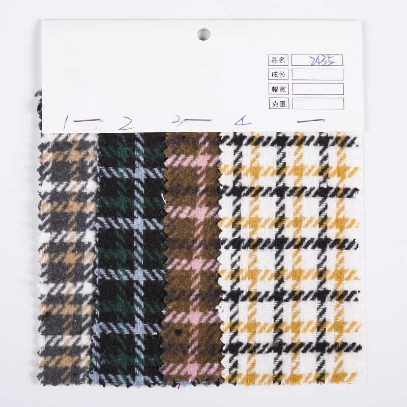OEM/ODM Tkanina tweedowa z włókien chemicznych w kratę w kratę 2435. Mamy ponad 20-letnie doświadczenie w branży i jesteśmy znani z wysokiej jakości tkanin i przędz.