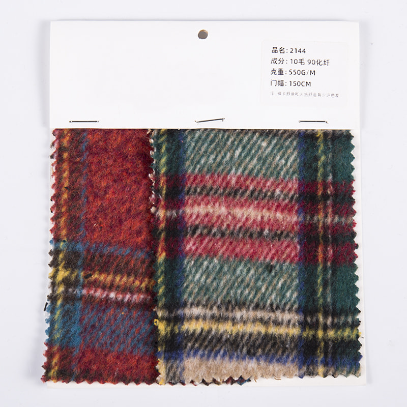 OEM/ODM Tkanina w kratę w kratę Czerwony Zielony 10% Wełna 90% Tweed z włókien chemicznych 2144. Mamy ponad 20-letnie doświadczenie w branży i jesteśmy znani z wysokiej jakości tkanin i przędz.