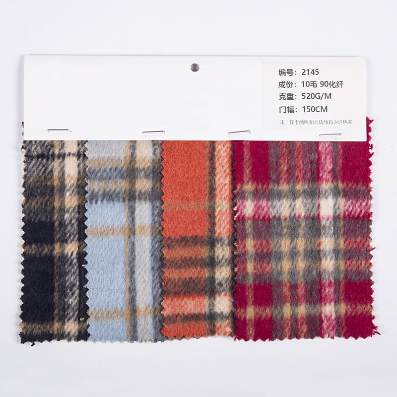 Tartanowa krata okienna Wielokolorowa wełniana poliestrowa tkanina tweedowa 2145 przyjmuje unikalny szkocki wzór w kratę, który sprytnie łączy tradycyjne i nowoczesne elementy, aby pokazać niepowtarzalny i elegancki styl. Wzór szyb jest przesunięty, a kolory są bogate i różnorodne. Głównymi składnikami tkaniny są 10% wysokiej jakości wełny i 90% wysokiej jakości włókien chemicznych. Dodatek wełny nadaje tkaninie naturalną miękkość i ciepło, a w dotyku jest delikatny i wygodny, jakby potrafił uchwycić wiatr i słońce szkockich wyżyn. 90% składnik włókien chemicznych zapewnia odporność na zużycie, odporność na zmarszczki i łatwą pielęgnację tkaniny. Dodatek włókien chemicznych nie tylko poprawia trwałość tkaniny, ale także sprawia, że ogólna faktura jest bardziej wyrazista i stylowa, a także można łatwo kształtować różne modne kształty. Proces tkania tweedu sprawia, że tkanina ta jest bardziej charakterystyczna. Wytrzymała przędza przeplata unikalną teksturę i fakturę, dodając ubraniom odrobinę retro i surowego uroku. Jednocześnie proces ten sprawia, że tkanina jest bardziej oddychająca i zapewnia uczucie komfortu nawet w zimnych porach roku.