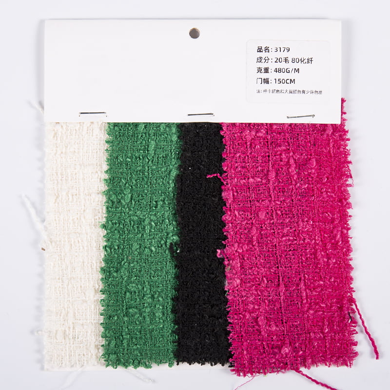 OEM/ODM Wełniana tkanina poliestrowa Chanel na sukienkę 3179. Mamy ponad 20-letnie doświadczenie w branży i jesteśmy znani z wysokiej jakości tkanin i przędz.